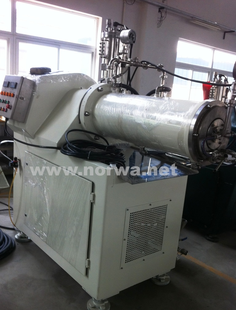 機座采用臥式形式,結構采用盤片棒銷混合結構,有利用加強研磨,材質采用特耐磨鋼、鋯陶瓷、聚氨酯等,可以應用于不同濕法研磨漿料場景,如涂料、電子漿料、色劑、油墨等,粉碎腔可以從1L至1000L不等,線性放大。..