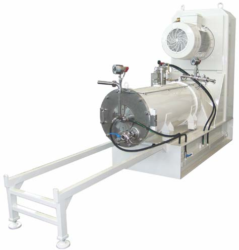 The grinding system pin nanomill shows the evolutionary develop- ment of system with the rotor-slotted pipe separating system. The enclosed horizontal agitator mill is designed for highest product throughput rates and possesses a pin grinding system for highest grinding intensity.